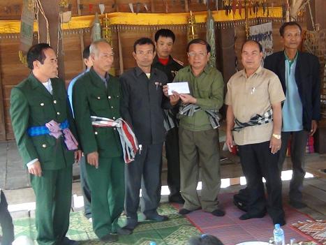- Ảnh dưới : Trao quà của Doanh nghiêp Hoàng Nguyên : 11.200.000 đồng (mười một triệu hai trăm ngàn đồng tặng nhân dân bản Thổ huyện Pha Lan, tỉnh Sa va na khet - Lào khoan một giếng nước sạch cho hơn 200 hộ dân bản để sử dụng hàng ngày ;