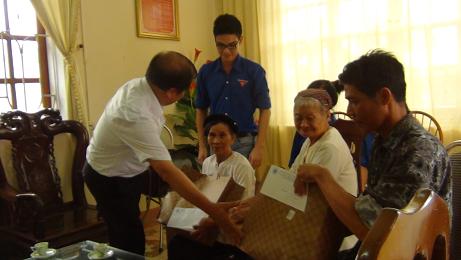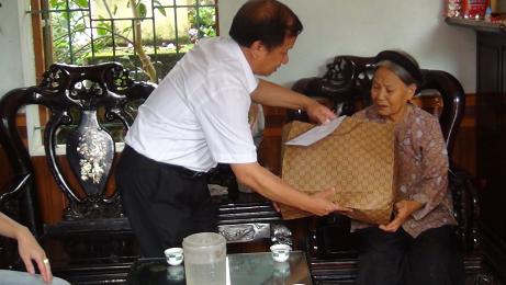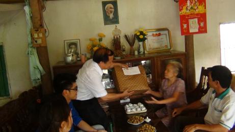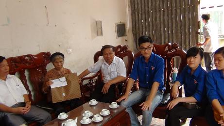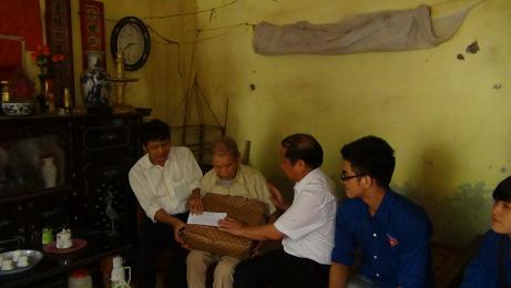 - Ảnh dưới : Thăm tặng quà gia đình liệt sỹ tại thị trấn Nam Sách. Bố mẹ của liệt sỹ đều đã hơn 90 tuổi..